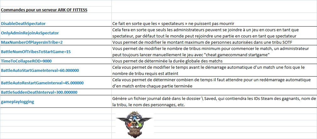 3 - les commandes pour un serveur Ark Of Fittest